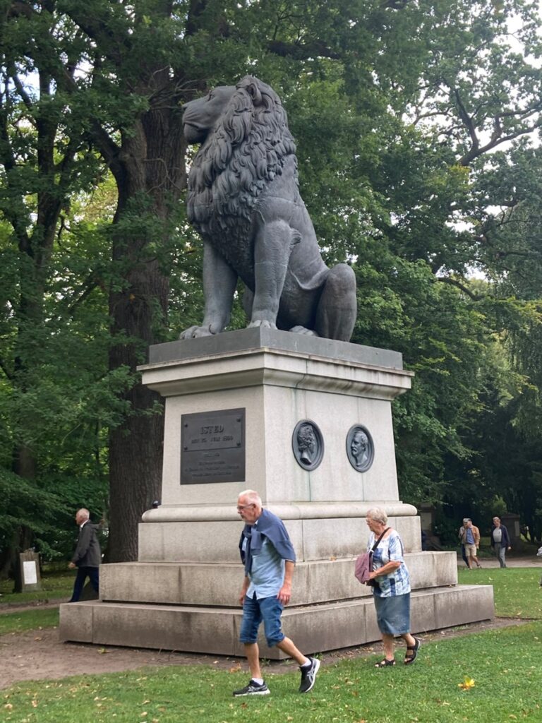 På vejen dertil fortalte Henning Haugaard lidt om Treårskrigen 1848-50. 1840-erne var nationalstaternes tid, en bølge der blæste hen over Europa. Det begyndte med en revolution i Frankrig under parolen: Frihed - Lighed - Broderskab. I Danmark blev det til nationalisme, liberalisme og demokrati. Et oprør med et stort optog 21. marts 1848 endte hos kong Frederik 7, der kort forinden var blevet ny konge. Han var enevældig konge, og det ønskede danskerne at det nu skulle være slut. Kongen sagde blot: I skal få jeres ønske opfyldt og derefter blev der nedsat en kommission, der skulle udfærdige en ny grundlov. Også i Rendsborg samledes et oprør. Prinsen af Nør og hans bror, hertugen af Augustenborg var tyske. De ønskede at Det Tyske Forbund skulle bestå af Preussen og Østrig samt hertugdømmerne: Slesvig, Holsten og Lauenborg. De tyske oprørere sendte en delegation til København for at forhandle. Men blev her afvist af Kongen. ”Det må ej ske”, hermed var treårskrigen en realitet. Danmark og Preussen kom under pres fra udlandet og det betød at der blev sluttet fred den 2. juli 1850, men den provisoriske regering i Slesvig-Holsten valgte at fortsætte borgerkrigen. Og det endte med Slaget ved Isted Hede den 25. juli 1850, der dermed blev det blodigste slag i Danmarkshistorien. Danmark havde 534 faldne og Slesvig-Holsten 845 faldne. Sejren blev dansk, og de danske soldater vendte hjem til København i sejrstriumf. Krigen endte med at Danmark overtog kontrollen med Slesvig til Ejderen. Og sejren skulle markeres med mindesmærker. Det blev gjort med Istedløven i Flensborg og Den Tapre Landsoldat i Fredericia, begge skabt Hans Waldemar Bissen (1798-1868). I efteråret 1863 forsøgte den danske regering med Novemberforfatningen, at løse nogle af de forfatningsmæssige problemer, som helstaten befandt sig i efter Treårskrigen. Men forfatningen var i strid med internationale aftaler, som man havde indgået med stormagterne. Kong Christian 9 var lige tiltrådt som ny konge i Danmark. Han var Lyksborger. Sagde han nej var han tyskervenlig, og hvis han sagde ja blev der krig. I Preussen ville Bismarck nu afprøve sin hærs styrke. Følgelig erklærede Østrig og Preussen krig mod Danmark i 1864. Krigen endte med at Danmark tabte og måtte afstå hertugdømmerne Slesvig, Holsten og Lauenborg til Preussen og grænsen kom til at gå ved Kongeåen. På hjemvejen spiste deltagerne på Den Historiske Kro, fik set mindesmærkerne i Sankelmark samt Istedløven på Flensborg gamle kirkegård.